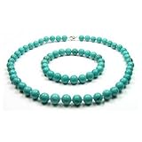 This stunning turquoise jewelry set is the perfect matching bead jewelry set for a charming versatile look. Both pieces in this turquoise necklace bracelet set have gorgeous tonal variations between each bead which subtly reflect the light. Each bead in this turquoise necklace and bracelet set has individual discolored patterns which add to the appeal of this turquoise jewelry. This turquoise jewelry set consists of a turquoise .925 sterling silver necklace and a turquoise sterling silver bracelet. The versatility of turquoise means you can wear this set every day or just save it for special occasions for a potent impact. Order your sterling silver necklace and sterling silver bracelet jewelry set today!