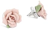 Vintage earrings featuring hand set genuine porcelain blossoms created using a classic shade of soft pink. The small green leaf adds a "taken directly from nature" element. Perfect for any ensemble from jeans and T's to business attire, these are classic 1928 gems.