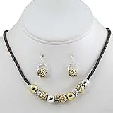 Here is a cute brown cord with silver and gold bead necklace and earrings set. On this piece you will find smooth and textured charm beads! It measures 16" long and has a 2" extension. Comes with matching dangle earrings. Your necklace set will come to you in a foil gift box great for gift giving. Box may be a different color than the one shown.
