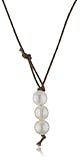 City style meets country craft in the in2 Design "Victoria" Large White Fresh Water Pearl Drop Necklace. A brown leather cord is knotted with a row of three medium-luster freshwater-cultured pearls in creamy white. Measuring 18 inches, the leather cord fits around your neck in a choker style, with the pearls dropping down a few more inches for added length. This handcrafted necklace has a loop clasp that fastens around the pearl drop in the front for a unique design touch. Pair this necklace with a plaid button-up shirt, fitted jean skirt, and cowboy boots for a relaxed, put-together look.