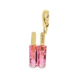 An adorable addition to your charm bracelet-this perfectly sweet pink popsicle charm by Juicy Couture! Cute clear pink popsicle with rhinestone "ice crystals" accent. Juicy on one of the gold popsicle sticks. Polished gold lobster clasp with embedded Juicy crown logo. Measures approx. 2" including clasp.