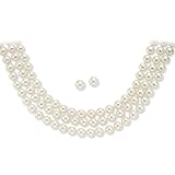 A sumptuous triple strand necklace of simulated pearls is just the thing to wrap round fashion-forward necks, glowing with a lovely luster in a stylish 18" length. Comes complete with matching stud pierced earrings. 14k gold-plated accents. Palm Beach Jewelry Item #: 48674