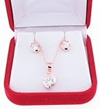 Don't miss out on this amazing deal! 14k Rose Gold plated, .925 Sterling Silver stud solitaire necklace & earring set.