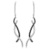 Black and white diamonds intertwine in these gorgeous twist earrings. Slim bars of 10 karat white gold are prong set with radiant black and glittering white diamonds and curve and weave together in a contemporary branch-like pattern. There are 72 diamonds altogether in this lovely pair, for a total diamond weight of 1/3 carat. They swing below curved bars of polished white gold, and the earrings are completed with posts and friction backs.