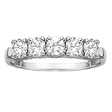 Express your eternal love with this gorgeous wedding ring. A sparkling row of dazzling diamonds beautifully accents a sleek, polished band of lustrous 14k white gold. A look to treasure forever.