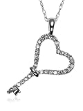 Offer her the key to your heart with this playful diamond pendant, crafted from 14 karat white gold and embellished with a multitude of sparkling round diamonds. Polished gold accents and a tapered polished gold bale complete the look. A truly charming gift for someone you love, this pendant is featured on a 14 karat white gold rope chain and fastens with a spring ring clasp.