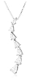 The classic journey curve pendant gets a fresh look with pear-shaped stones set into gleaming 14 karat white gold. Seven pear-shaped diamonds (1/4 cttw), are held securely in three-prong settings and arranged in a subtle S curve. The diamonds are near colorless and have a minimum clarity of I1. A sleek and shiny 18-inch box chain threads directly through the top of the pendant and fastens in back with a spring ring clasp.