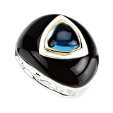 Feel truly regal in this swiss blue topaz and onyx ring. This ring set in rich 18k yellow gold and sterling silver will look spectacular no matter what else you're wearing.