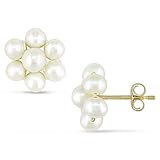 10K Yellow Gold Freshwater White Flower Pearl Earrings