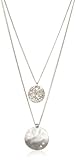 The Kenneth Cole Two Row Hammered Circle Pendant is 19 inches of refined elegance. This necklace features a two-tiered design for twice the dramatic effect, as two glimmering pendants are showcased vertically from slender silver chains held by a lobster-claw clasp. The bottom pendant features luminous but understated silver-tone metal, given a hammered texture for a classic look. Above it hangs a slightly smaller pendant covered in radiant crystals, catching and refracting light with every movement. Together they create a brilliant and alluring result, beautifully complementing fine evening dresses with plunging necklines.