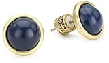 Get a modern-meets-vintage look with the "Modern Sculpture" Blue Stud Earrings by Kenneth Cole New York. These simple stud earrings are made from navy blue resin cabochons, an ideal material for a lightweight accessory. The blue cabochons feature a pale swirled design and a smooth rounded surface to create a pearl-like effect. Set in gold-toned bezel settings, the stones measure .4 inch wide. The earrings are mounted on gold-toned post ear wires slightly off-center, so they sit below the earlobe for an elegant look. With comfortable Kenneth Cole-logo earring backs, the studs can be worn comfortably all day or all evening. Pair them with a retro gold necklace or bracelet for a classic, chic look.