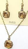 This set is New and stunning! We've put together a set of 14K Gold (plated) dangle earrings and necklace with small square Champagne multifaceted Swarovski crystals. You will find this goes with so much in your wardrobe that you wear it so often. Comes gift wrapped! Made in France and designed by Catherine Popesco.