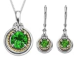 S&G Sterling Silver and 14k Gold Emerald Earrings and Pendant Necklace Set