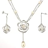 Pearls have long been said to symbolizes prosperity, purity and long life. She will love this matching necklace and earring set in white freshwater pearls set in sterling silver. The necklace with pendant and dangle earrings are superbly crafted in stunning modern leaf design in polished .925 Sterling Silver and Rhodium Plated. Tarnish free. Necklace measures: 16" and Dangle Earring Measures: 1.5" Length. The set come complete in a Bucasi gift box. Exclusively from Bucasi. Great Gift at a Unbelievable Price!