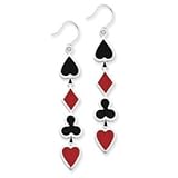 Sterling Silver Red & Black Enameled Card Suit Dangle Earrings