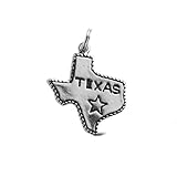 Celebrate the spirit of Texas! This fun Texas charm features a rope pattern outlining the state and a star engraved atop its capital. Engraved on the charm's reverse side are symbols of Texas pride, a cowboy hat, longhorn steer and oil derrick. Charm measures 1" L x 3/4" W. Proudly made in New Mexico, USA with fair labor. We do our part for the environment by crafting our jewelry from recycled genuine sterling silver.