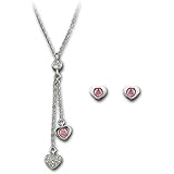This playful and romantic set comprises a necklace and a pair of matching, heart-shaped pierced earrings. Two delicate hearts dangle from a rhodium-plated necklace. One is set in clear crystal pav�, the other features a Light Rose crystal. A clear crystal chaton in bezel setting links the two elements together harmoniously. The perfect gift for a loved one! Measures 14 7/8" (chain); 3/8" x 1 3/4" (pendant)