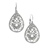 Vintage inspired with a modern twist, these leverback earrings are set in a shining silver hue. A teardrop shape is filled in with a swirl filigree design that mimics heart shapes near the bottom. Feminine and fun!