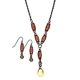 Grace and beauty converge as you adorn yourself with this sophisticated vintage-inspired copper tone and Topaz necklace set. Complimenting this chic necklace is a pair of petite smoked and light Colorado topaz color drop earrings.