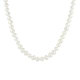 You can't go wrong with the classic White Freshwater-Cultured Pearl Necklace--it's a must-have for everyone's collection. A single strand of pretty polished silvery-grey freshwater-cultured pearls is just what you need on hand to add a little something special to your look. Measuring 18 inches, this necklace will rest in just the right place on your neck for standout style. Pair this pearl necklace with a lacy tank, cashmere cardigan, and full skirt for a romantic stroll through the park.