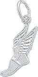 Please note that product images are enlarged to show detail. The actual item is 0.716 - (approx. 3/4 in.) inches long and 0.361 - (approx. 3/8 in.) inches wide. The Winged Shoe Charm in rhodium-plated Sterling Silver is hand-polished with a High Polish finish. The charm shape is Flat. Every Rembrandt charm comes with a heavy-duty jump ring that can be twisted open and easily attached by you. All Rembrandt Charms are guaranteed for life.