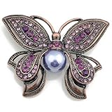 Austrian Rhinestone Vintage Style Amethyst Crystal Butterfly Pearl Pin Brooch