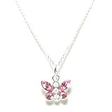 Genuine Swarovski crystal rhinestones and .925 sterling silver combine for a simply sparkling necklace fit for royalty! �Crystal rose pink color wings with 3 clear round crystal center pendant measures 12mm x 8mm set in sterling silver and hangs from a 13-inch sterling silver chain with a 1-inch extension. �Not for children under 3 due to small parts.
