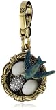 What a sweet sign of spring! This delightful bird?s nest charm from Juicy Couture is a unique addition to your Juicy Couture charm collection. Beautiful enamel bird on a gold tone nest. She's perched above two pearlized eggs and one covered in pave crystals. Juicy Couture crown logo and banner engraved on the bottom of the nest. Gold plated lobster clasp. Measures approximately 1".