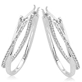 These distinctive U-shaped earrings have a double hoop design, with a bar of diamonds linked around a larger bar of brightly polished 10 karat white gold. Eighty-six petite round diamonds (1/4 cttw) decorate these modestly-sized hoops. They are finished with hinged snap posts.