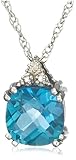 The 10k White Gold, December Birthstone, Coated Blue Topaz and Diamond Pendant stunningly combines intricate design with radiant accents and a soft, cooling hue. Hanging 18 inches from a delicate rope chain, this lustrous 10k white gold pendant features a brilliant blue topaz gemstone, checkerboard cushion-cut and securely held by white gold prongs. Crowning the topaz is a sparkling diamond accent, giving this alluring pendant an added element of shine. Elegant and soothing, this striking pendant is an ideal gift for someone born in the month of December.
