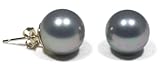 These fabulous stud earrings suggest the exotic look of Tahitian pearls, but without the extravagant price tag. The 10 millimeter rounds are made from dyed silver-grey mother-of-pearl and display a subtle color and beautiful shine. Set on posts of 14 karat yellow gold, they fasten with traditional friction backs. Clean them gently with a soft cloth to maintain their beauty.