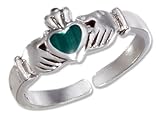 STERLING SILVER ANTIQUED CELTIC CLADDAGH TOE RING WITH MALACHITE INLAY HEART