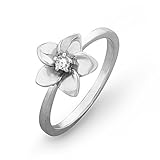 Sterling Silver Round Diamond Solitaire Flower Ring (/ cttw)
