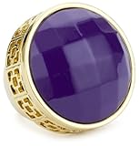 Make a splash with the Trina Turk Gold and Purple Shanghai Ring. A gold-plated base inlaid with sparkling amber resin provides a pretty setting for a faceted round deep purple resin stone. Measuring 1.25 inches in circumference, this bold, chunky ring is the only jewelry you'll need for outstanding style. Pair this trendy cocktail ring with dark-washed jeans, heels, and a colorful top for a fun and fashionable night out on the town.