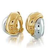 A little silver and gold go a long way. Our Two Tone Interlocking Circle Huggie Hoop Clip On Earrings look classically right for night and day. Clip earrings with a stunning polish and a comfortable cushion back. Sensational looking and secure. Wear our gold plated clip on earrings with cool confidence. These seductive two tone clip on earrings are sophisticated, eye catching and cheap. Why buy overpriced earrings clip ons when you can get that luxury look with a price that makes sense.