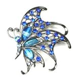 Blue Austrian Rhinestone Butterfly Brass-Tone Brooch Pin