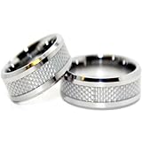 This beautiful Tungsten Carbide ring set is 8MM in width and comes in a variety of sizes. It is all high polish with white carbon fiber inlay that is cobalt-free. Although the carbon white fiber gives the illusion of texture, the top of the ring is smooth. Tungsten Carbide is ranked second hardest next to diamond on the Mohs scale, diamond being a 10 followed by Tungsten Carbide as 9 so it will forever remain scratch proof and new. This contemporary design is the perfect combination of style and resilience. This ring is perfect for engagements, weddings, anniversaries, and other special occasions and is ideal for men & women!