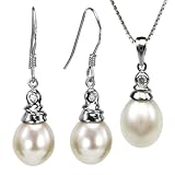 Dress-up or dress-down with this classical 8-9mm AAAA drop pendant necklace and earrings set that is highlighted by a silver crystal top. The pendant comes with a 16" or 18" decent weighted (~ 2.5g) CAREFREE Sterling Silver chain and the earrings are set on fish-hooks. Available in natural white, peach and lavender. The pearls are rated AAAA or LS1D. The shape is drop "D" with luster that is rated "AAAA" or "L" for excellent luster with sharp reflection and the surface is rated "AAA" or "S1" meaning it is virtually clean of 95% or better. * CAREFREE Sterling Silver is Rhodium plated which gives the highest resistance to tarnishing and also adds an expensive platinum look to our jewelry