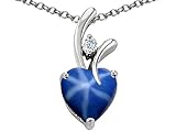 925 Sterling Silver 14K Gold Plated Created Heart Shaped Star Sapphire Pendant crafted in 14k White Gold Plated Silver Dimensions: Width: 8.00 mm Length: 20.00 mm. 1 Stone 1.90 Carats 8 mm Heart Shaped Star Sapphire Color: Blue Clarity: Clean, 1 Stone 0.05 Carats White Quartz Color: Colorless Clarity: Clean Free 18 inches chain included . FREE GIFT BAG! FREE GIFT CARD! Finejewelers Style Number: 302991.