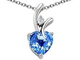 925 Sterling Silver 14K Gold Plated Genuine Heart Shaped Blue Topaz Pendant crafted in 14k White Gold Plated Silver Dimensions: Width: 0.25 Inches Length: 0.75 Inches. 1 Stone 1.90 Carats 8 mm Heart Shaped Color: Medium to Light Blue Clarity: Clean, 1 Stone 0.05 Carats White Quartz Color: Colorless Clarity: Clean Free 18 inches chain included . Finejewelers Style Number: 26721.