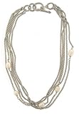 This darling toggle necklace is a classic style accessory that is sure to make a long lasting impression. �If you like designer jewelry without the high price, then this is the piece of jewelry for you. �This cable design can be seen in the details of the rings and the toggle clasp on this fashion necklace. This particular silver necklace features five thick box chains that are strung with five stationary faux pearl beads. �The five strands of chain come together with a toggle clasp. �This designer inspired necklace looks great when paired with a casual outfit or wear it to spice up your evening attire. �Either way you choose to wear it, you will be happy to show it off. �Constructed of sterling silver and brass and plated in rhodium, this necklace is resistant to tarnishing making it maintenance free for you. �This designer inspired necklace measures 18 inches in length. �Don't miss out on this great bargain. �