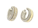 These designer inspired cable cz hoop earrings are artistically crafted and a fraction of the price of authentic designer jewlery. If you are looking to add a classic style pair of earrings to your accessory collection, then these earrings are perfect for you. �This classic cable design laces a gold tone row of round cz stones adding an element of sparkle to these fashion earrings. The two-tone design of these earrings make them extremely versatile. Wear them with any of your gold tone or silver tone jewelry. �Also pair the classic earrings with casual everyday attire or spice up your evening attire. These earrings are also reversible. �Wear the cz side facing out for a night out on the town or wear the gold tone side out with casual attire. Whenever and wherever you decide to wear these earrings, you will be sure to enjoy them for years to come. These oval hoop earrings dangle 0.875 inches from your ear and are held firmly in place with a saddleback clasp. The oval hoops measure 8mm thick and 22mm in diameter. These fashion silver earrings are crafted in sterling silver and brass and are rhodium plated making them resistant to tarnishing. Shop our assortment of designer inspired jewelry and start saving today!