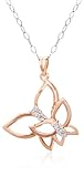 The DiAura Sterling Silver Diamond-Accent Double Butterfly Pendant Necklace presents a whimsical design that is perfect for her girly style. Resting from a 17-inch cable chain is a pendant shape created out of a double open butterfly design. The butterflies are plated in pink metallics that emphasize the wonderful sparkle of the natural white diamonds that appear in the center of each butterfly shape. The diamonds are set in DiAura's signature miracle plating which creates the look of a larger stone.