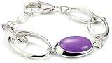 Bold and beautiful, the ELLE Jewelry Dyed Purple Jasper Oval Link Sterling Silver Bracelet is meant to stand out. Wide 925 sterling silver oval and round links join together with a bright purple dyed jasper gemstone in a bezel setting. ELLE jewelry's signature red ruby is embedded on the backside of the bezel to symbolize a woman's strength and inner beauty. Pair this bracelet with a chic wrap dress and hoop earrings for a gorgeous, get-noticed look.