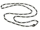 Lightweight long-and-short figaro chain of 2.3mm gunmetal finish brass, with matching lobster claw clasp. This gunmetal chain is narrow enough to wear with most charms and pendants. Neither silver nor steel, these dark gunmetal chains are very masculine, and very affordable.
