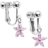 Non-pierced earrings. Sophisticated CZ flower clip earrings. Handmade Screw back clip earrings.. Specifications: Approximately 1.25" Length, Rhodium Plated Clip-On Earrings, Handmade in the USA. Handcrafted Pink Cubic Zirconia Flower Clip On Earrings
