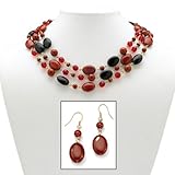 Simple looks suddenly become special when you wear this go-with-anything ensemble. The set consists of a triple-strand necklace with multi-shaped beads including red jasper, wood, lucite and faceted glass. An extraordinary color combination! The necklace is adjustable 16" to 18" length. Comes with matching pierced earrings. 14k gold-plated. Palm Beach Jewelry Item #: 48709