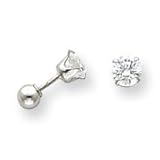 14k White Gold 5mm Cubic Zirconia and 4mm Ball Reversible Earrings - Measures 4x4mm - in 14k White Gold - Product Attributes: - Screw back - CZ - Reversible - Polished - JewelryWeb Style: QTE39205W - FREE gift-ready jewelry box