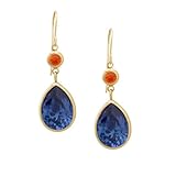 The 14k Yellow Gold Orange and Tanzanite Cubic Zirconia Drop Earrings present a vibrant color display that will leave you reminiscing about warm summer days. Each fishhook backing showcases a drop earring design created by a circular orange tanzanite stone followed by a statement teardrop-shaped blue tanzanite stone that reveals a faceted finish with plenty of sparkle. The contrasting color combination, matched with the bold yellow gold trim infuses this pair with tropical design that makes them perfect for warm weather.