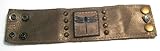 Brown pewter leather cuff with vintage inspired painted dragonfly.